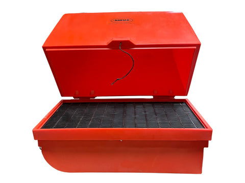 Thank you for reaching out! There is not a thermostat directly on the Calf Warmer, but the 110-volt heater does have 3 heat settings and 2 fan settings for proper regulation under most temperature conditions.